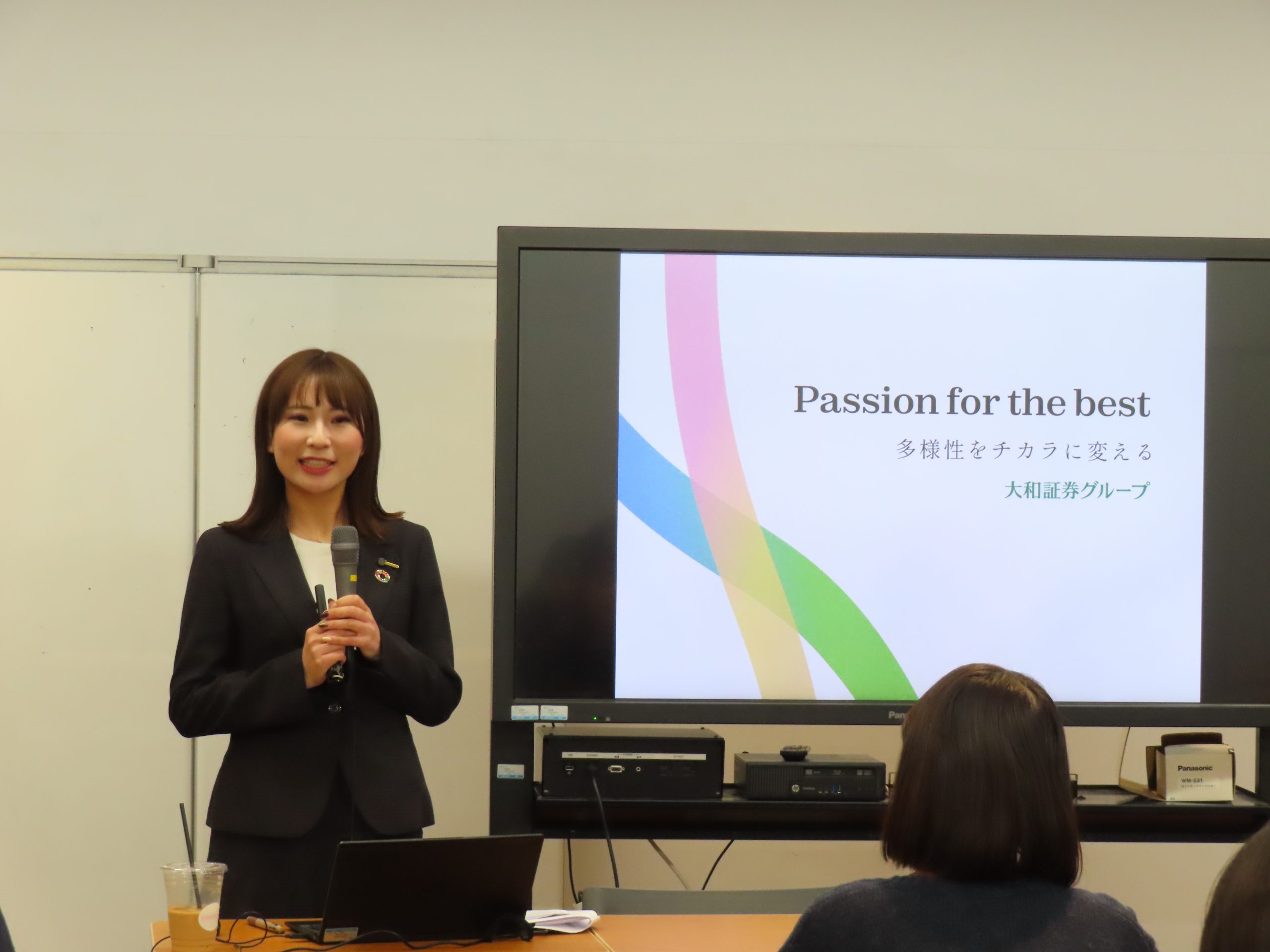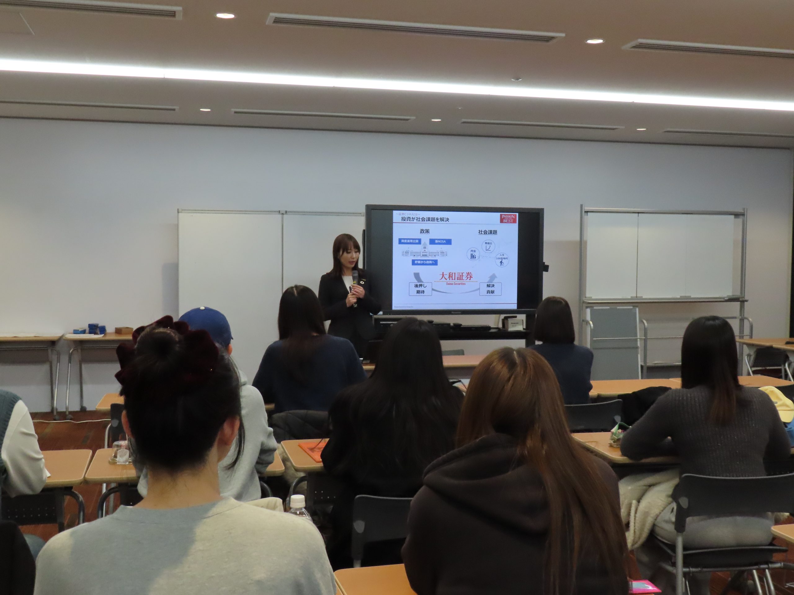 11月27日、本学英語文化学科(現:英語グローバル学科)の卒業生で、現在は大和証券株式会社にて4月に新設されたデジタルアドバイザリー課でご活躍されている久松偲帆さんをお迎えし、第2回目の就職セミナーを開催しました。