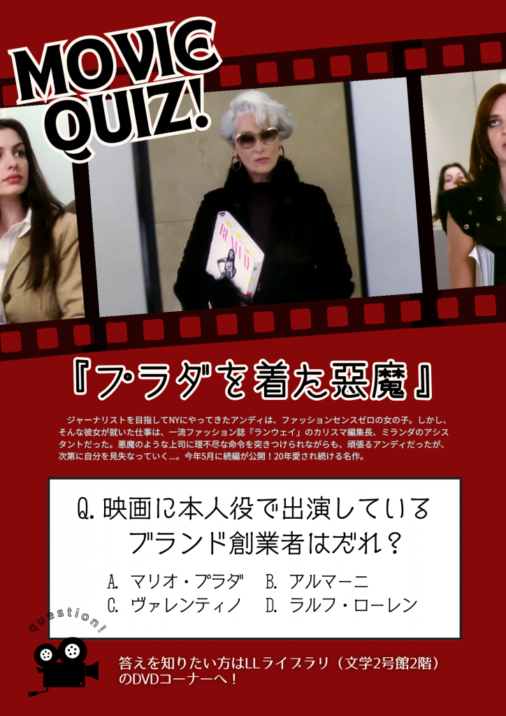 LLライブラリで観られるDVDの中からその映画にまつわるクイズを出題します。