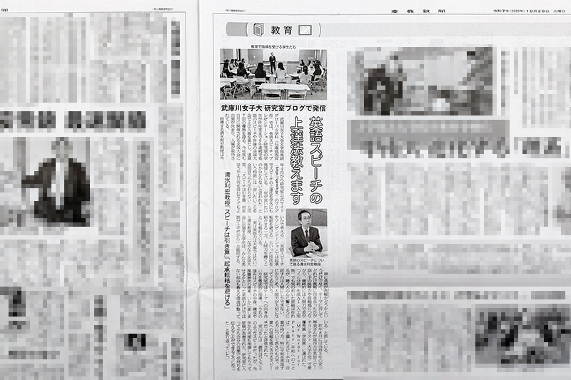 - 本学科の「英語スピーチ・プレゼンテーション研究室」(清水教授)の活動が産経新聞の教育特集で紹介されました