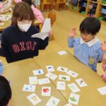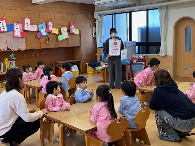 先日、武庫川女子大附属幼稚園でボランティアをさせていただきました。今回は昨年度に引き続きの参加となりました。クリスマスをテーマに、粘土遊びとアルファベットのかるたで遊びながら英語に触れるアクティビティを考案しました。チームとしては、メンバーそれぞれが多忙なうえ、準備期間が約一ヵ月という短い中で、園児たちに合わせたコンテンツを考えることが難しく感じました。さらに、直前に何名かのメンバーが参加できなくなるという事態もありましたが、残ったメンバーで話し合ったり、他の参加者を呼びかけたりして、何とか当日を迎えることができました。当日は、前回のアクティビティを覚えてくれている子もいて、とても嬉しかったです。英語の理解度は園児によって異なるため、一人ひとりに寄り添うことで、最初は難しそうにしていた子も次第に楽しそうな表情へと変わっていく姿が印象的でした。私たちにとっても充実した時間となり、子どもたちに「英語って楽しい」と感じてもらえるきっかけになっていれば幸いです。