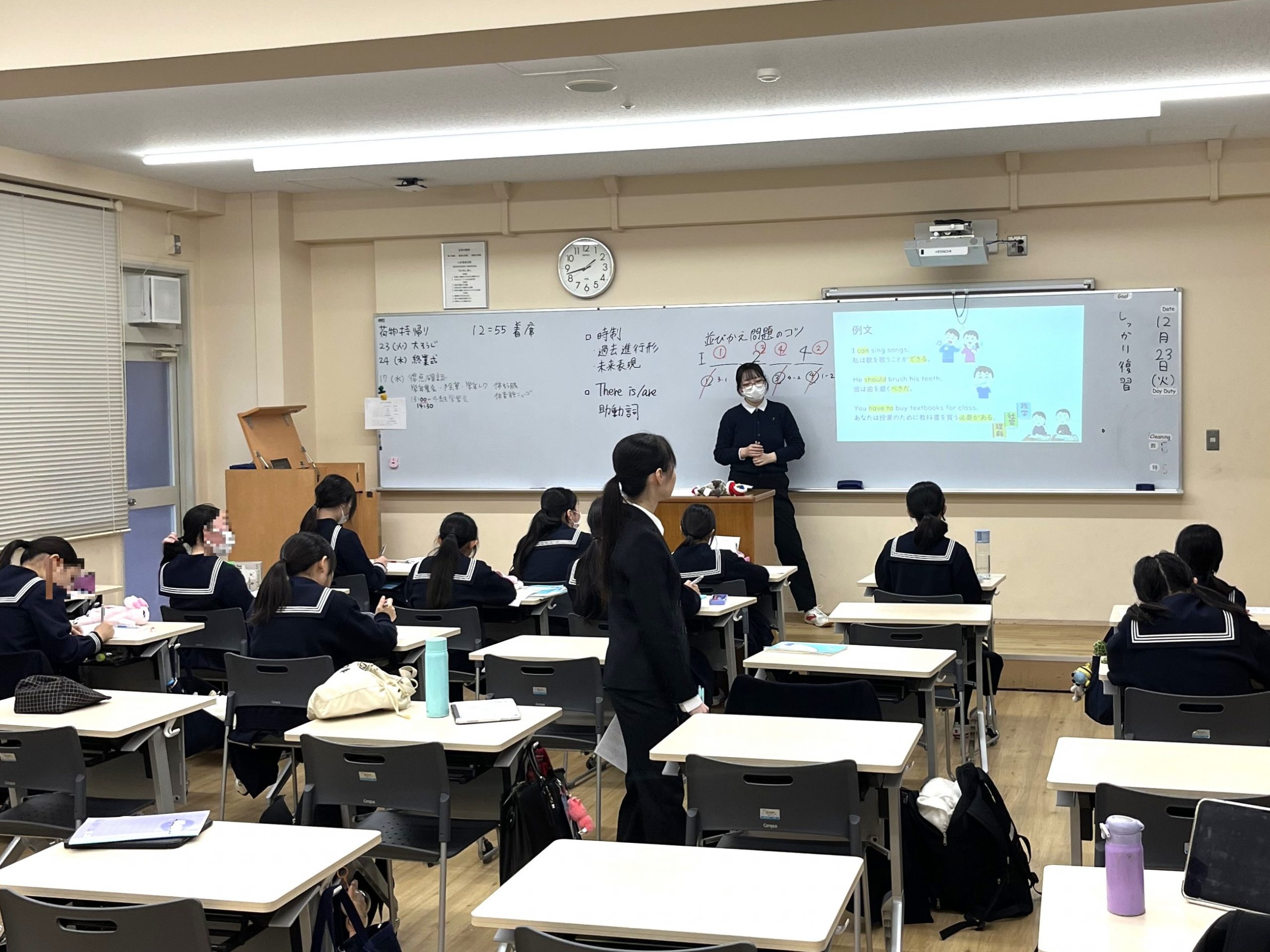 英語グローバル学科で英語教職課程を学ぶ学生8名が、佐々木顕彦先生(英語文化専攻)のコーディネイトのもと、武庫川女子大学附属中学校1年生を対象に指導を行いました。12月から1月にかけて計4日間、1月に実施される英語検定4級の受験に向けた対策に取り組みました。