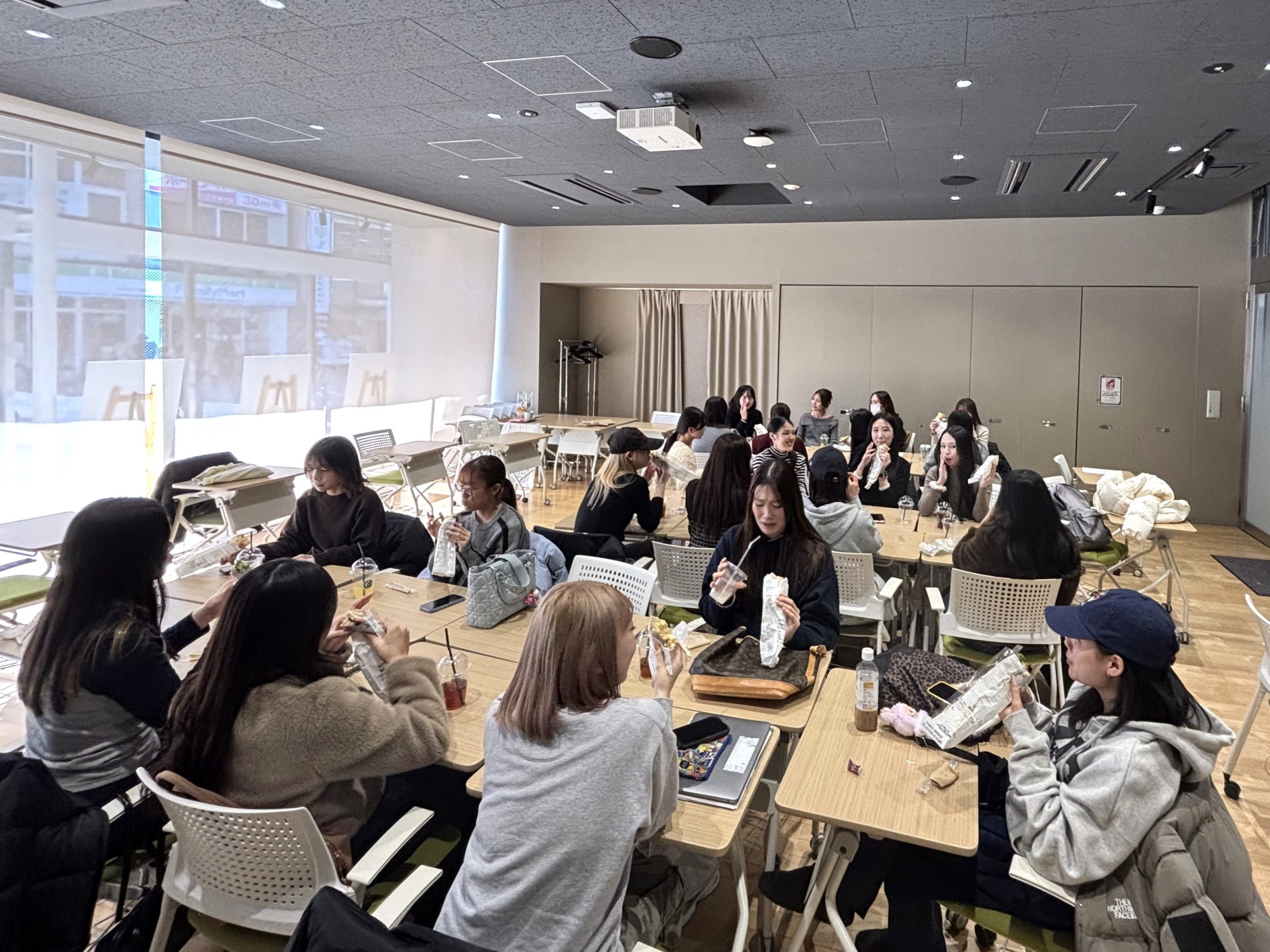 報告会終了後には、懇親会を行いました。ゼミ内での学年を越えた交流が生まれ、特に後輩たちは、先輩たちの就職活動の体験談やアドバイスに興味津々で耳を傾けていました。