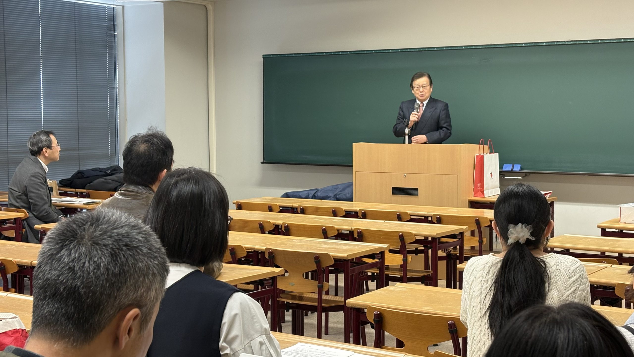 3月の学科会にて、今年度をもってご退職される玉井暲先生と冨永英夫先生より、ご挨拶をいただきました。